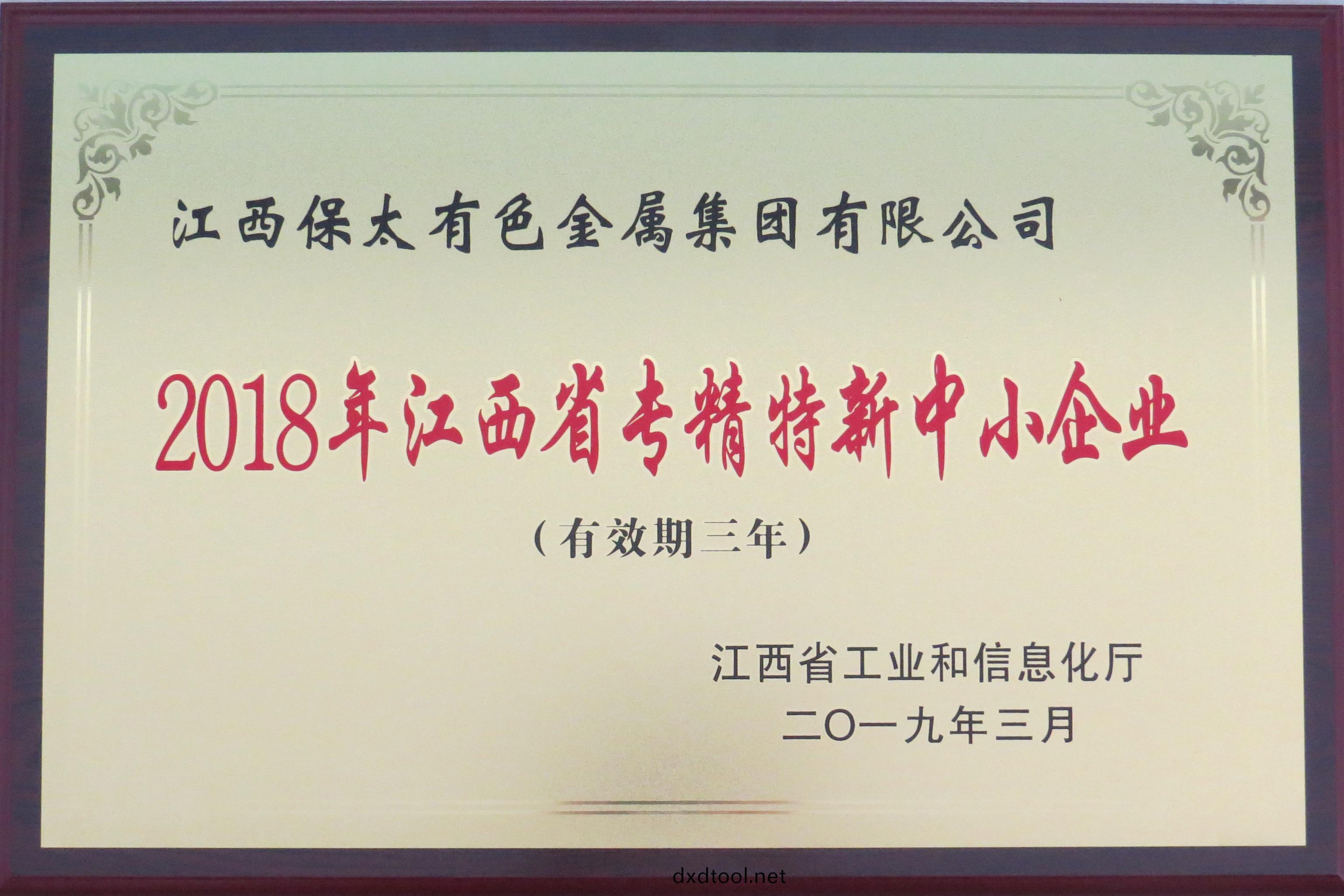 "Specializationand novelty" small and medium-sized enterprises are small and medium-sizedenterprises with the characteristics of "specialization, refinement,characteristics and novelty".Jiangxi Baotai Group is a medium-sized enterprise,which won the title of "2018 provincial 'Specialization and novelty' smalland medium-sized enterprises". It is a high affirmation of Jiangxi BaotaiGroup's industry position, market space, core competitiveness and goodsustainable development by Jiangxi Provincial Department of Industry and InformationTechnology, and it is also a kind of encouragement and support.