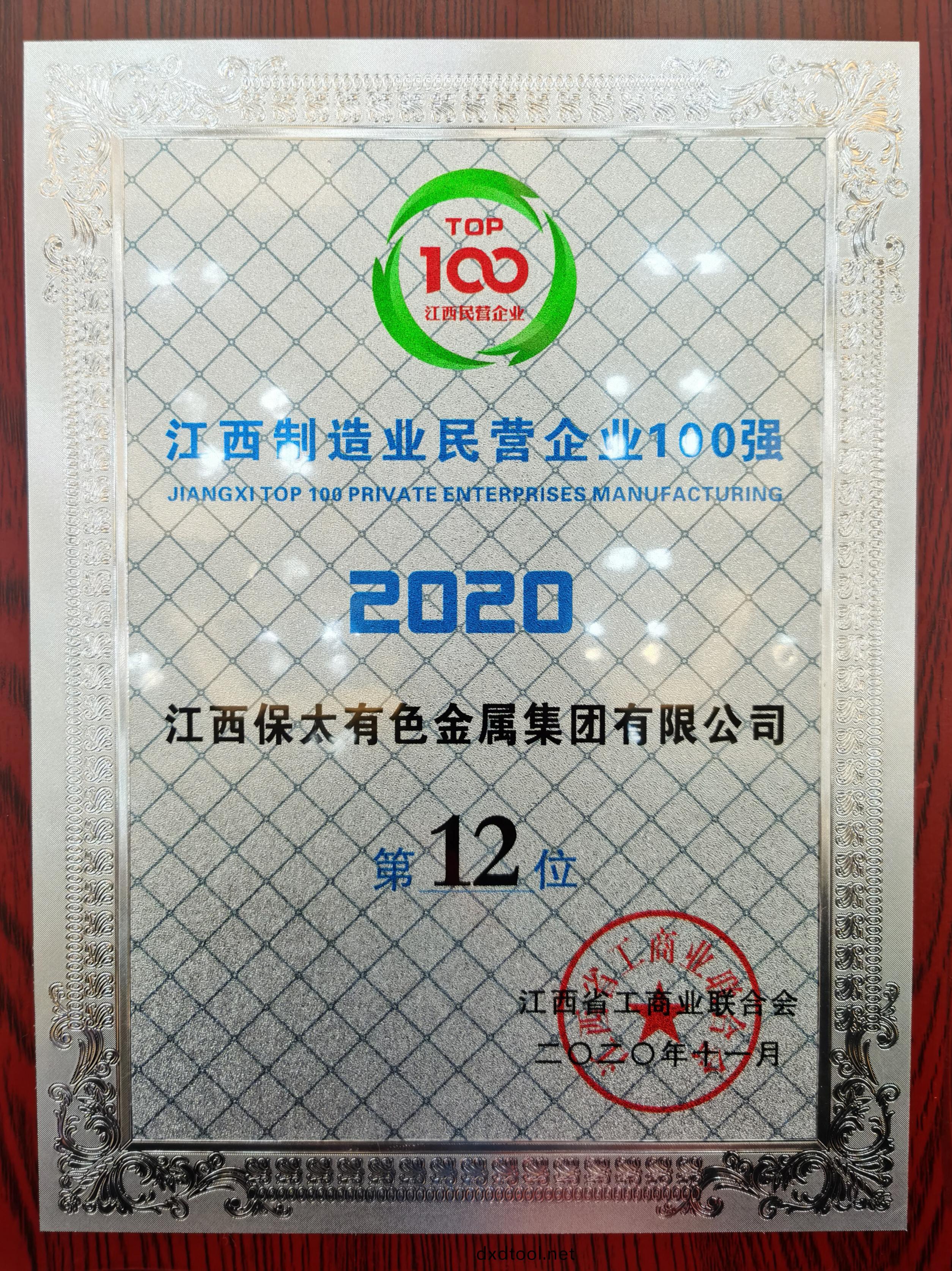 On November 8, 2020, the jiangxi Top 100 Private Enterprises 2020 Summit hosted by Jiangxi Federation of Industry and Commerce was held in Nanchang. Jiangxi Baotai Group ranked 24th among the Top 100 Private Enterprises 2020 in Jiangxi province and 12th among the Top 100 Manufacturing Private Enterprises in Jiangxi Province, and was also selected as an excellent case in Jiangxi Private Enterprises Social Responsibility Report (2020).