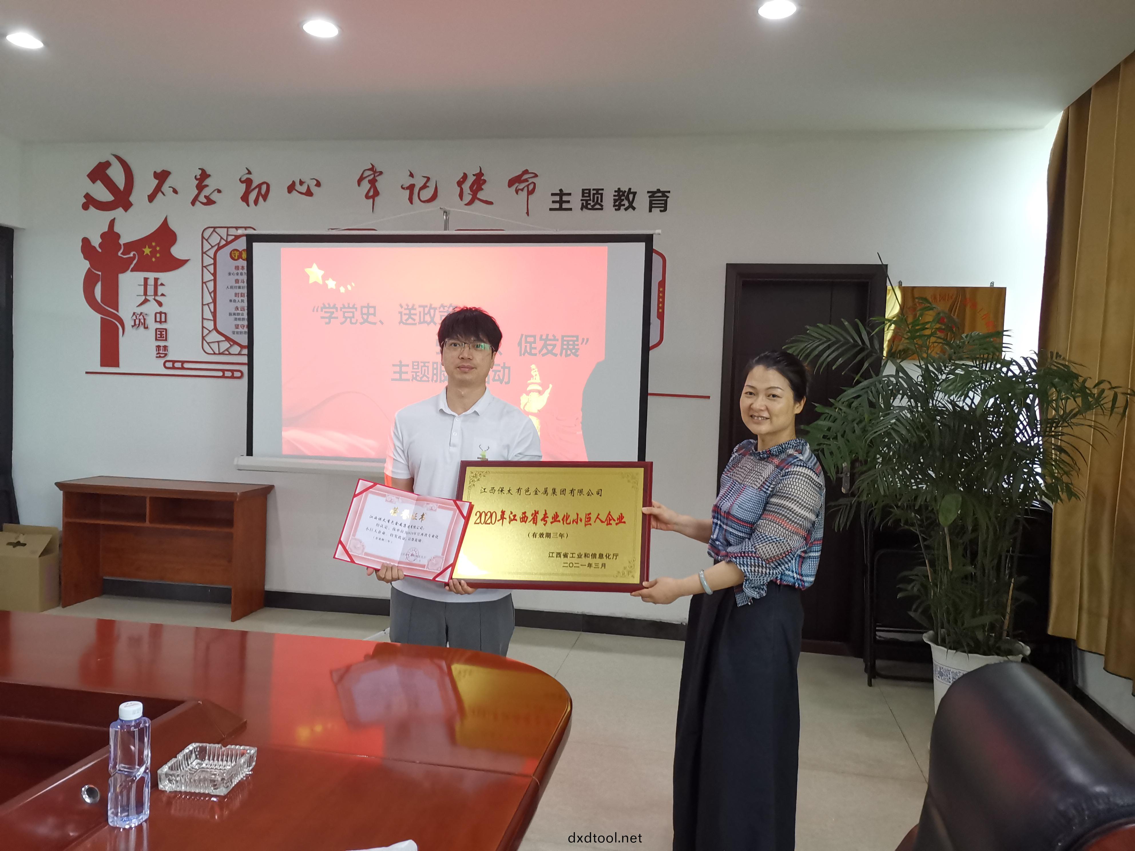 On the morning of June 29, 2021, Jiangxi Baotai Group was awarded the honorary certificate and plaque of "Specialized Little Giant Enterprise of Jiangxi Province in 2020".