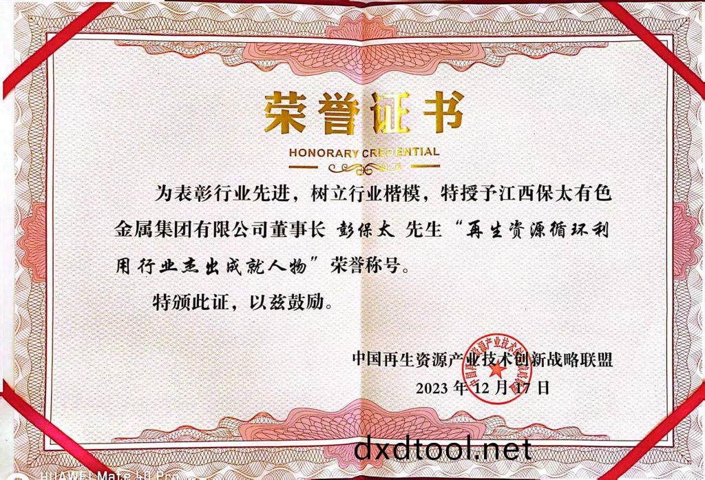 Peng bao tai was awarded the 2023“Outstanding achievements in the recycling of renewable resources industry,” the honorary title